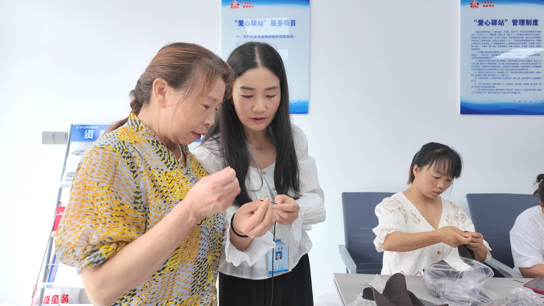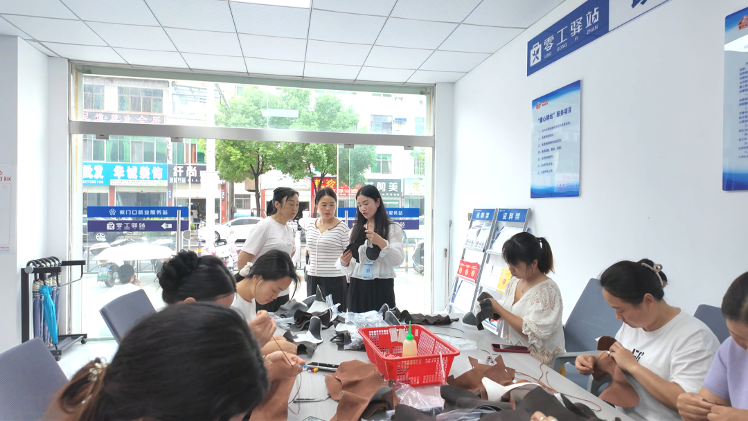 記者在現場注意到,原本提供用工信息的展板旁,也添置上了工作臺,就連供零工歇腳的休息區長椅,如今也鋪滿了鞋面材料和半成品,這個靈活就業的“加油站”,已悄然升級為技能培訓與即時增收的“實干車間”。