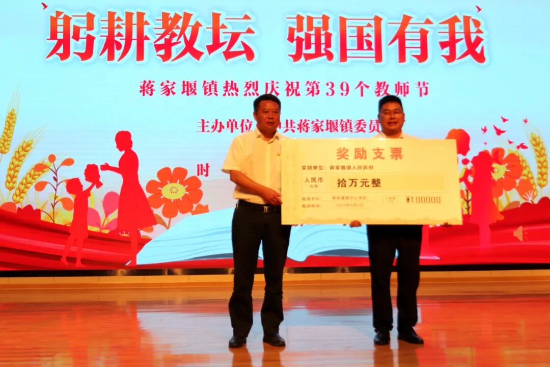 9月7日,蔣家堰鎮(zhèn)舉行第39個教師節(jié)慶祝活動。該鎮(zhèn)黨委政府向鎮(zhèn)中心學(xué)校頒發(fā)了教育教學(xué)質(zhì)量獎,對優(yōu)秀教師、師德先進(jìn)進(jìn)行了表揚(yáng)。全體教師莊嚴(yán)宣誓,表達(dá)了不忘初心、砥礪前行的決心。