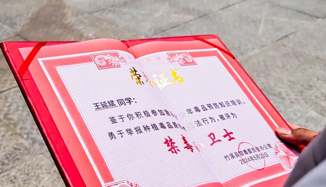 “王延斌同學能將學到的禁毒知識運用到日常生活中,及時發現并阻斷毒品原植物的傳播風險。非常棒!希望同學們向他學習!”民警現場為王延斌同學送上榮譽證書并鼓勵同學們一起識毒拒毒。