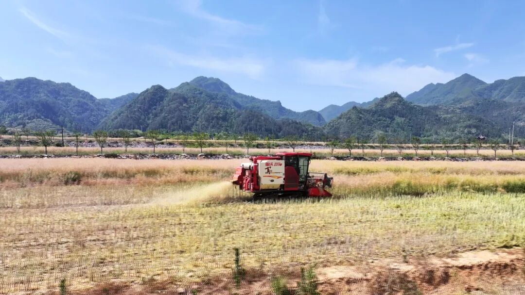 走進(jìn)蔣家堰鎮(zhèn)敖家壩片區(qū)高標(biāo)準(zhǔn)油菜田,金燦燦的油菜莢壓彎了枝頭,飽滿的油菜籽預(yù)示著豐收。伴隨著陣陣轟鳴聲,一臺(tái)臺(tái)大型聯(lián)合收割機(jī)來(lái)回穿梭,一次性完成油菜籽的切割、脫粒、秸稈粉碎還田等工序,作業(yè)效率較人工收割提升數(shù)十倍。