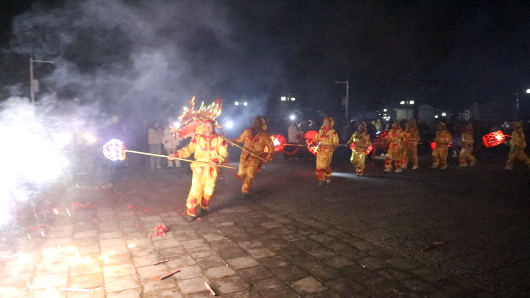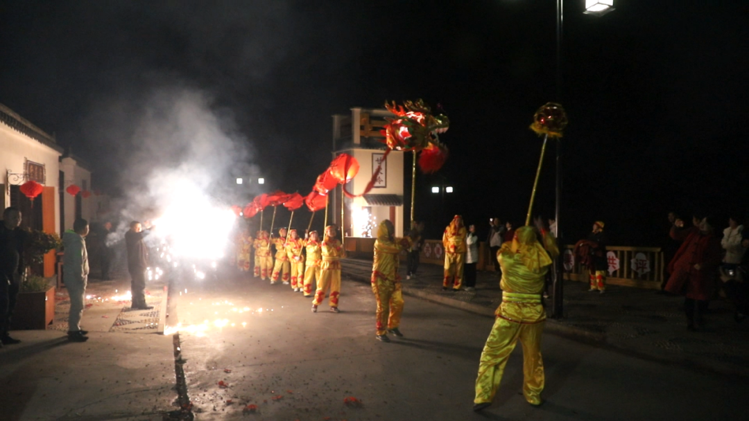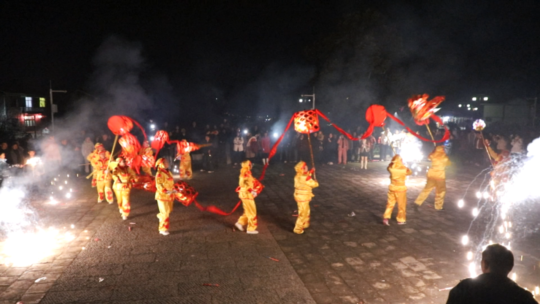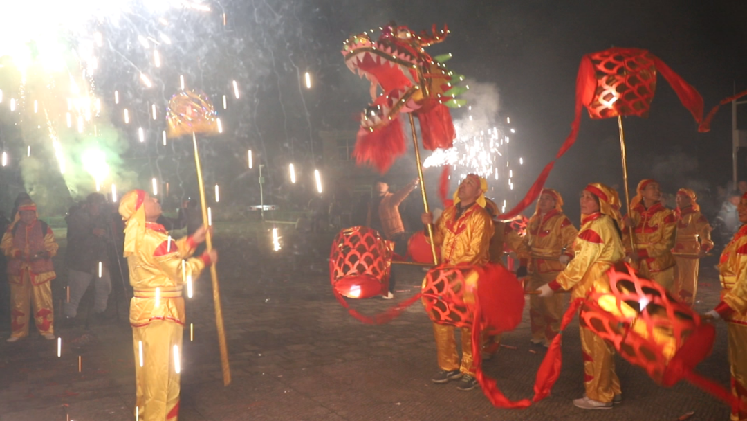 火龍時(shí)而翻騰跳躍,時(shí)而蜿蜒盤(pán)旋,璀璨的煙火照亮了夜空,也照亮了村民們幸福的笑臉。