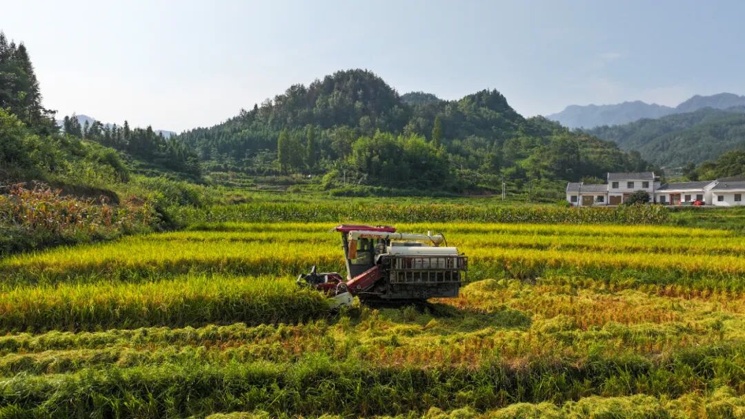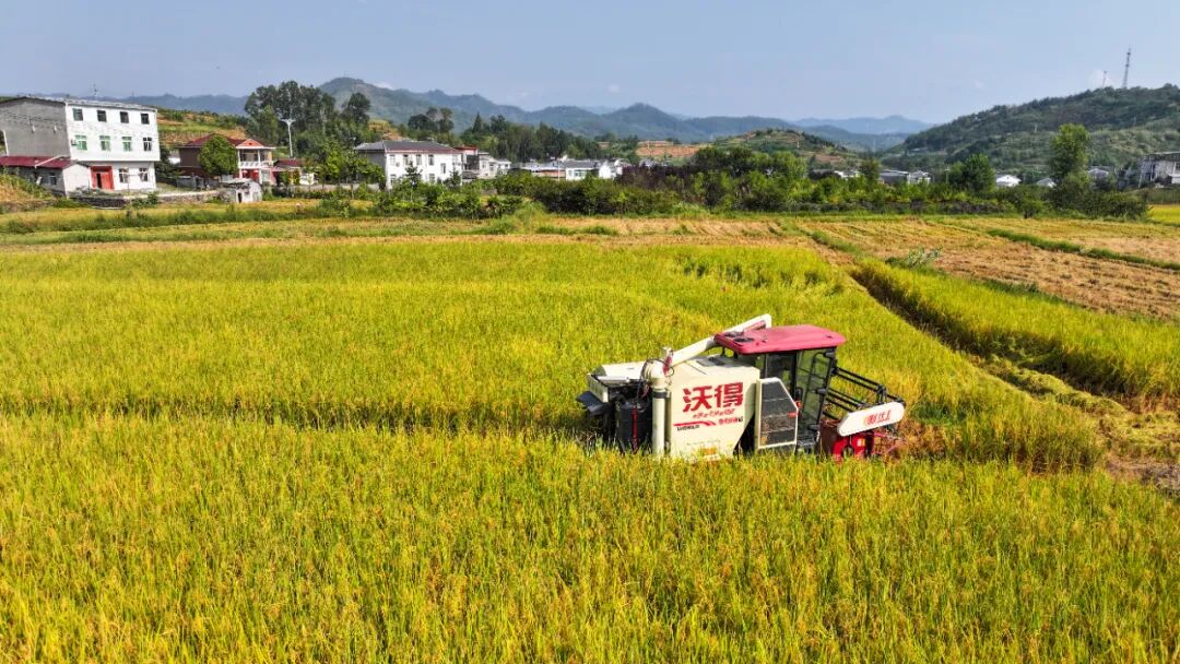 多臺聯(lián)合收割機(jī)開足馬力正在稻田里來回穿梭,從收割到出粒一氣呵成,農(nóng)戶們忙著裝袋、裝車,臉上洋溢著豐收的喜悅。