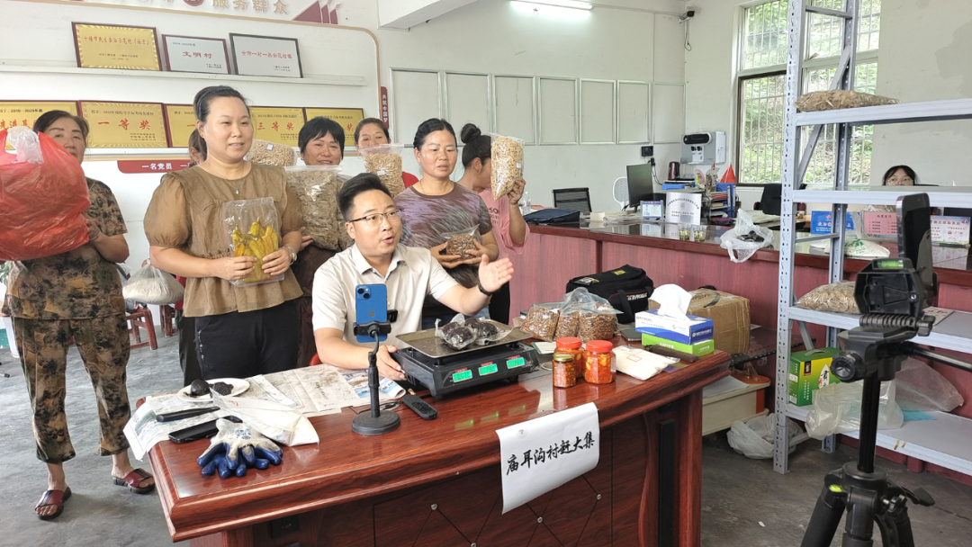 工作組針對這一問題,先后組織村“兩委”干部和村民理事會成員召開3次碰頭會,并以入戶走訪、線上調查、群眾院壩會等形式與群眾商討10余次,最終大家的目光聚焦到村書記陽金剛身上。原來,陽書記經常在抖音直播間宣講政策、開群眾會,有一定的影響力,不少群眾覺得依托他這個平臺探索“網上銷售”新路徑,是解決農副產品“銷售難”的不錯辦法。