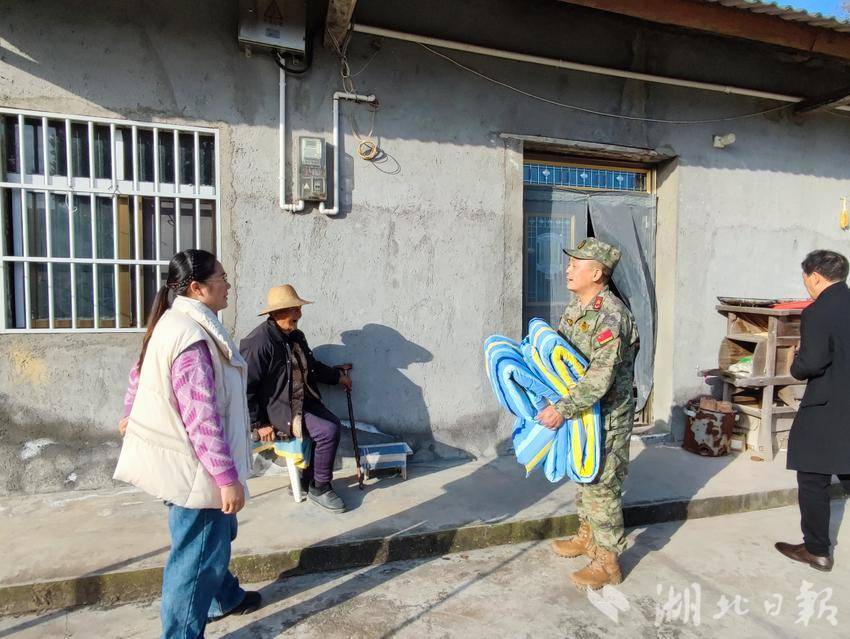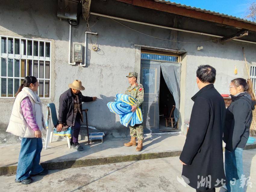 在樂長林老人家中,相關領導詳細詢問老人的身體狀況、生活起居和冬季取暖情況,并叮囑隨行村干部要持續做好老兵的關愛服務工作,確保老人溫暖過冬、安全過冬,為老人送上嶄新的保暖棉被和一些生活物資,并向老人致以崇高敬意和親切問候:“您為國家和平和民族尊嚴作出過巨大貢獻,黨和人民永遠不會忘記您!”