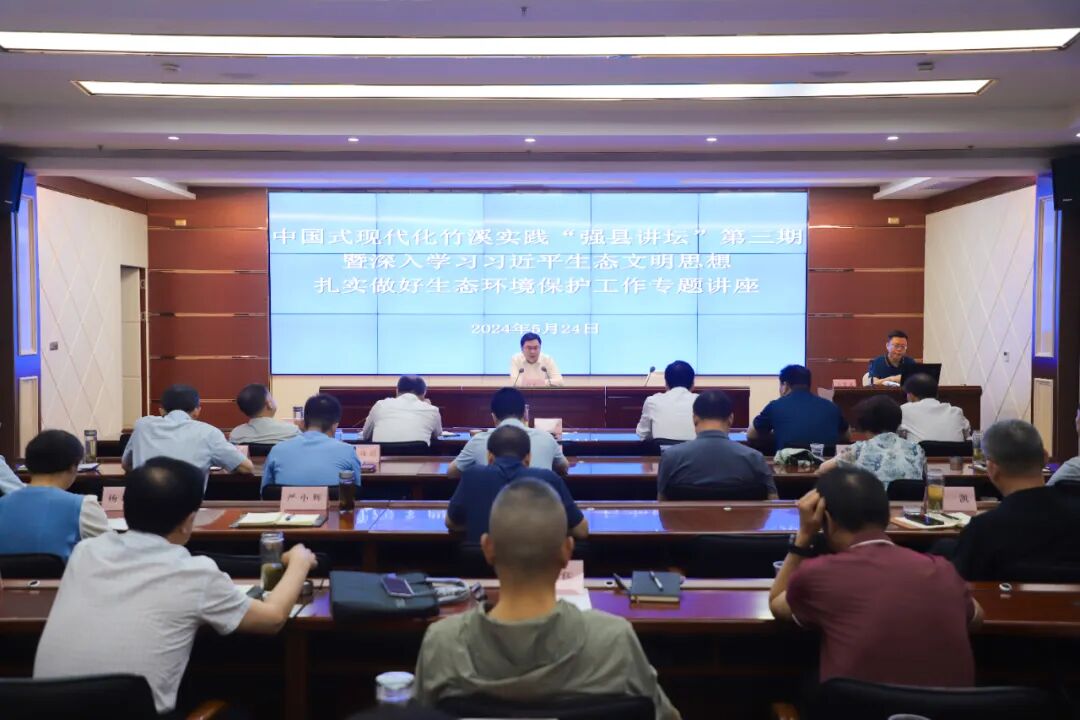 竹溪新聞網訊記者 龔臣 報道:5月24日,我縣舉行中國式現代化竹溪實踐“強縣講壇”第三期暨深入學習習近平生態文明思想、扎實做好生態環境保護工作專題講座。縣委書記許慶一主持講座并講話,強調要深入學習貫徹習近平生態文明思想,扎實做好生態環保工作,為推進中國式現代化湖北實踐和十堰篇章貢獻竹溪力量。特邀中南安全環境技術研究院股份有限公司高級工程師李剛作專題輔導。縣委副書記、縣長師文明,縣人大常委會主任蔣波,縣政協主席李晉,縣委副書記、政法委書記陶猛出席會議。