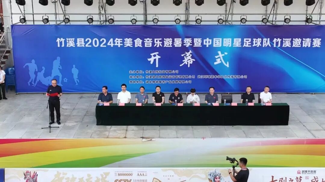 竹溪新聞網(wǎng)訊 記者 楊秦青 報(bào)道:以旅賦能,以體聚力。7月21日,竹溪縣2024年美食音樂(lè)避暑季暨中國(guó)明星足球隊(duì)竹溪邀請(qǐng)賽開(kāi)幕式在縣一中體育場(chǎng)舉行。中央電視臺(tái)著名主持人韓喬生應(yīng)邀為本次賽事現(xiàn)場(chǎng)解說(shuō),前國(guó)家女子足球隊(duì)隊(duì)長(zhǎng)劉愛(ài)玲應(yīng)邀參賽,縣委書(shū)記許慶一,市文化和旅游局黨組書(shū)記、局長(zhǎng)吳善宏,縣委副書(shū)記、縣長(zhǎng)師文明,縣人大常委會(huì)主任蔣波,縣政協(xié)主席李晉,市文化和旅游局副局長(zhǎng)、市體育中心主任王瑞,縣委副書(shū)記、政法委書(shū)記陶猛出席開(kāi)幕式。