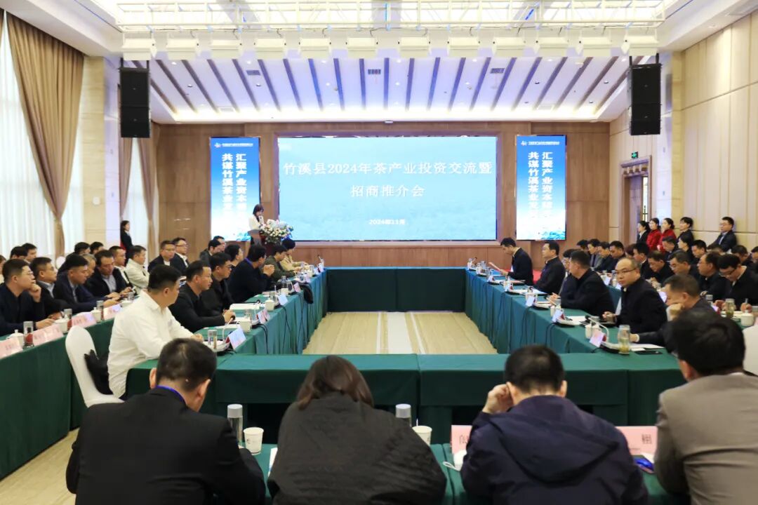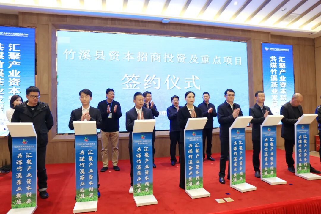 師文明向6家茶企負責人頒發茶產業招商大使證書。會上,舉行了竹溪縣招商及茶產業推介活動,分享了竹溪縣昶禾基金招商模式,分批進行竹溪茶葉專項基金戰略簽約、資本招商投資或投資項目簽約、產業落地簽約和竹溪泛茶原料供銷協議簽約。