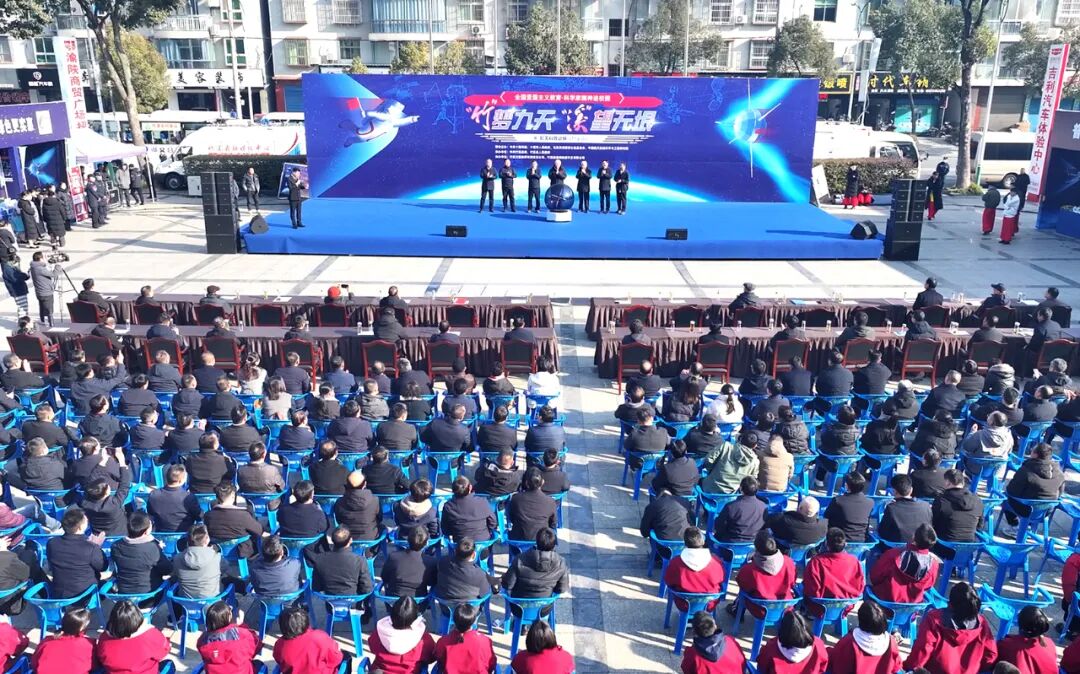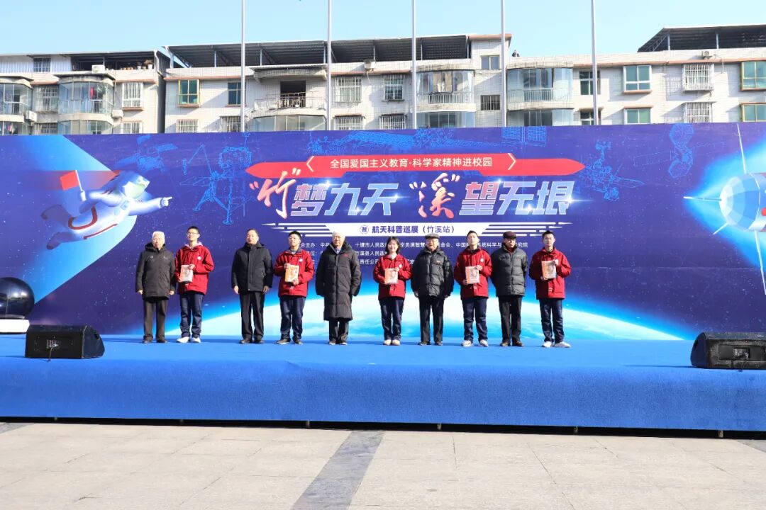 竹溪新聞網訊 記者 楊秦青 報道:“竹”夢九天、“溪”望無垠。1月11日,全國愛國主義教育·科學家精神進校園暨航天科普巡展(竹溪站)活動在竹溪縣鄂渝陜國際商貿廣場啟動。中國工程院院士、空間技術專家戚發軔,中國工程院院士、運載火箭專家龍樂豪,中國人民解放軍航天員大隊第一任大隊長申行運,“兩彈一星”暨航天科普專家王春河,全國航天科普首席科學傳播專家田如森出席啟動儀式。市委常委、紀委書記、監委主任聶漢平,北京靈境智慧公益基金會秘書長朱廉出席啟動儀式并致辭;縣委書記許慶一,中國航天系統科學與工程研究院六所副所長張會庭出席啟動儀式;縣委副書記、縣長師文明出席并致歡迎詞;縣人大常委會主任蔣波,縣政協主席李晉,縣委副書記、政法委書記陶猛出席啟動儀式。