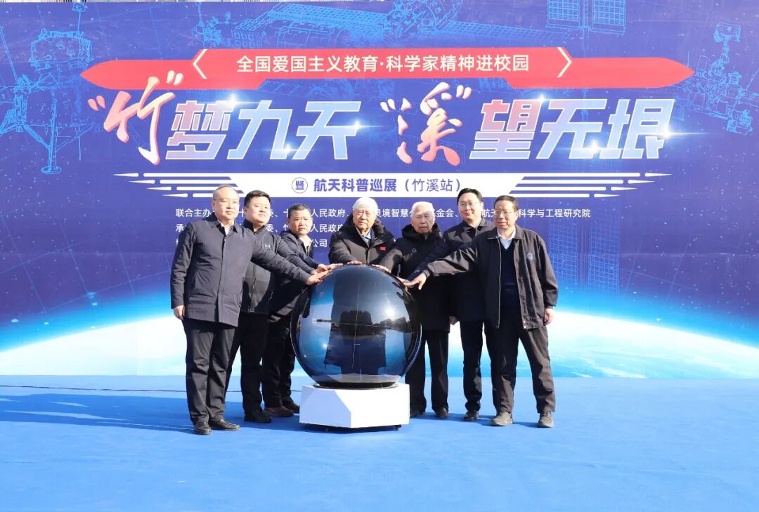 戚發軔、龍樂豪、聶漢平、朱廉、張會庭、許慶一、師文明共同手觸太空球啟動活動。5位院士、專家還現場為竹溪學生代表贈送航天禮物。