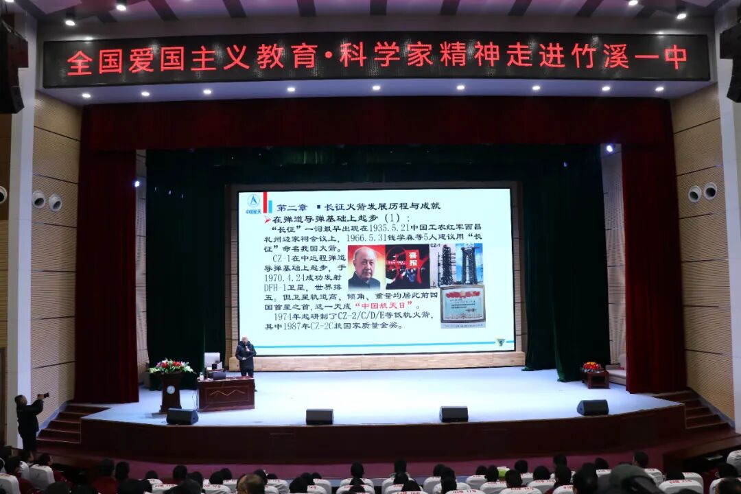 在授課過程中,戚發軔院士以神舟號飛船的研發歷程為藍本,結合自己親身經歷,深入淺出地講述著那些不為人知的幕后故事,從最初的設計藍圖繪制,面臨重重技術瓶頸,到科研團隊不舍晝夜、攻克難關,以及中國航天人始終秉持著自力更生、艱苦奮斗的精神,不斷突破技術瓶頸,取得舉世矚目的成就,每一個細節都扣人心弦。他鼓勵竹溪一中學生努力學習航天精神,勇于探索未知領域,為實現中華民族的航天夢貢獻自己的力量。