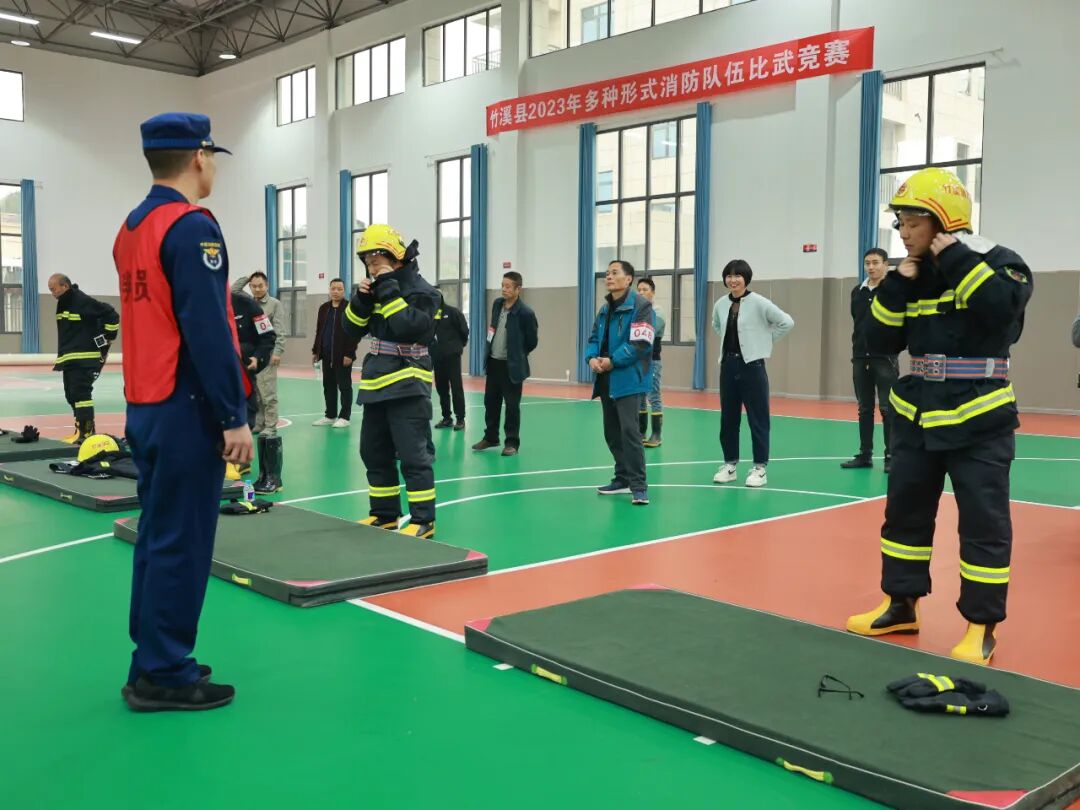 在隨后開展的多種形式消防隊伍比武競賽活動中,來自城關鎮四大社區、消防安全重點單位、物業服務單位微型消防站、企業專職消防隊、消防宣傳志愿服務隊的58支隊伍、200人參加比賽。比武競賽共設置消火栓水槍出水操、原地著滅火防護服等項目。各參賽隊伍爭先創優、唯旗誓奪,評判組嚴格制裁、公平公正,安全專班全程跟賽、緊盯隱患,通力保障比武競賽順利開展。