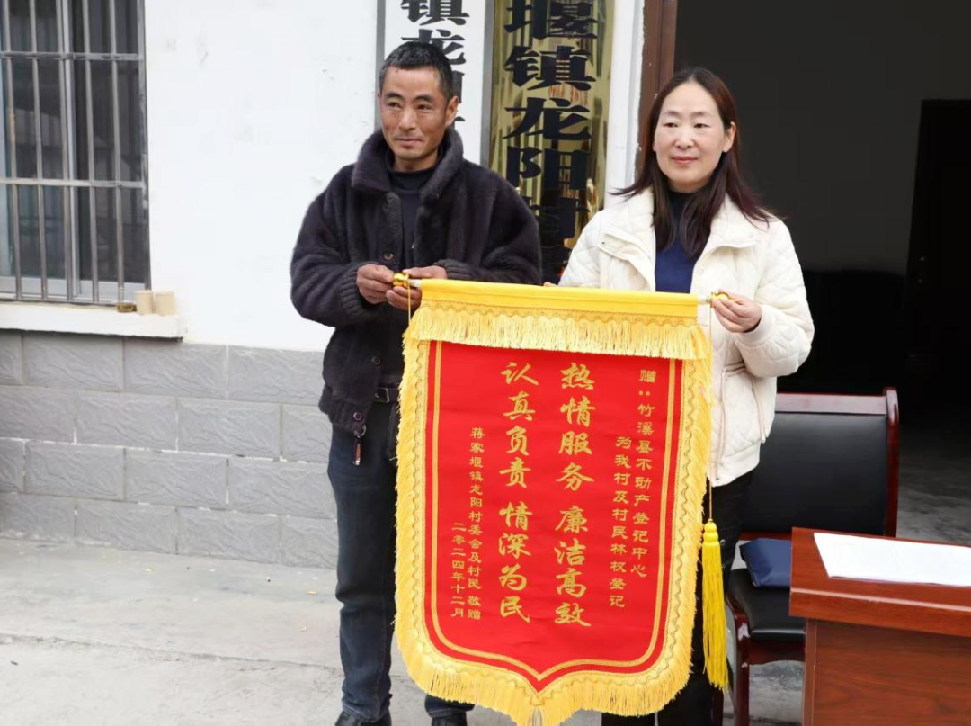 上門服務,暖人又暖心。龍陽村黨支部書記田振夏說:“村里留守的大多是60多歲的老人,去城里辦證領(lǐng)證腿腳也不方便。今天,村民在家門口就領(lǐng)到了不動產(chǎn)權(quán)證,大家都很高興。工作人員的服務也很周到、貼心,為他們點贊。”
