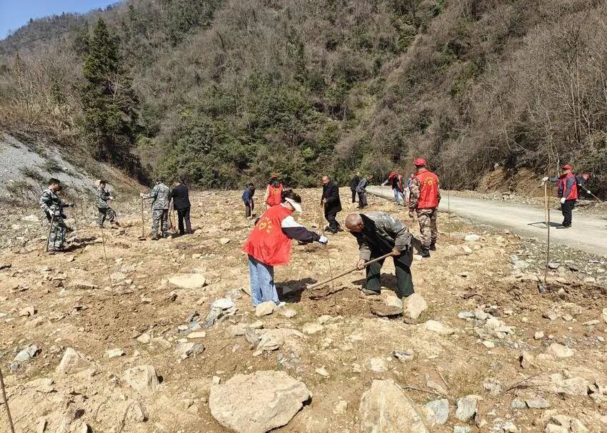 3月11日,桃源鄉(xiāng)組織全鄉(xiāng)機關(guān)及鄉(xiāng)直單位干部、各村“兩委”干部、護林員及公益性崗位、黨員群眾共計200余人,在甘溝子村植樹基地開展春季義務(wù)植樹造林活動。活動現(xiàn)場,大家三兩成群,分工協(xié)作,配合默契,從挖坑整地、栽樹植苗,到扶正壓實、提水澆灌,各個環(huán)節(jié)井然有序,給生機盎然的春天增添了幾抹新綠。經(jīng)過一上午的辛勤勞作,約10000株紅葉石楠、50株法國梧桐、900株山竹及其他綠色植物在春風中昂然挺立,煥發(fā)出勃勃生機。與此同時,全鄉(xiāng)其他各村春季綠化、補栽補植工作也同步進行。(朱嘉俊)