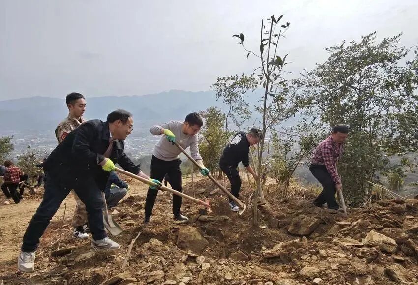3月12日,城關(guān)鎮(zhèn)組織機關(guān)干部、黨員志愿者、村(社區(qū))群眾,到后壩村南山片區(qū)開展春季義務(wù)植樹活動,以實際行動踐行“綠水青山就是金山銀山”發(fā)展理念,為打造“生態(tài)宜居城關(guān)”再添一抹新綠。大家三五一組,分工協(xié)作,干勁十足,扶苗、培土、澆水……每個環(huán)節(jié)都一絲不茍,現(xiàn)場一派熱火朝天的景象。經(jīng)過一下午的辛勤勞動,300余株新栽的銀杏、桂花等樹苗迎風挺立,為初春的山坡披上綠裝。(王志豪)