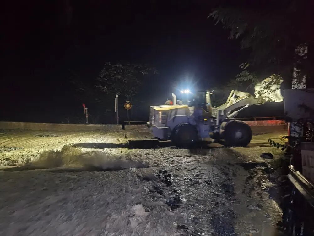 面對泥濘道路和復雜地形,搶險人員輪班作業、分組協作。一方面,是由機械組成的“鋼鐵戰隊”在轟鳴聲中全力開展清淤排障、疏通排水作業;另一方面,是由搶險隊員在雨夜頂著沒過膝蓋的積水、踏著泥濘,排查路基隱患組成的“血肉長城”。汗水與雨水浸透了工裝,泥漿沾滿了雙手雙腳,但無人退縮,大家只有一個信念:早一分鐘搶通,就早一分鐘保障群眾安全出行。