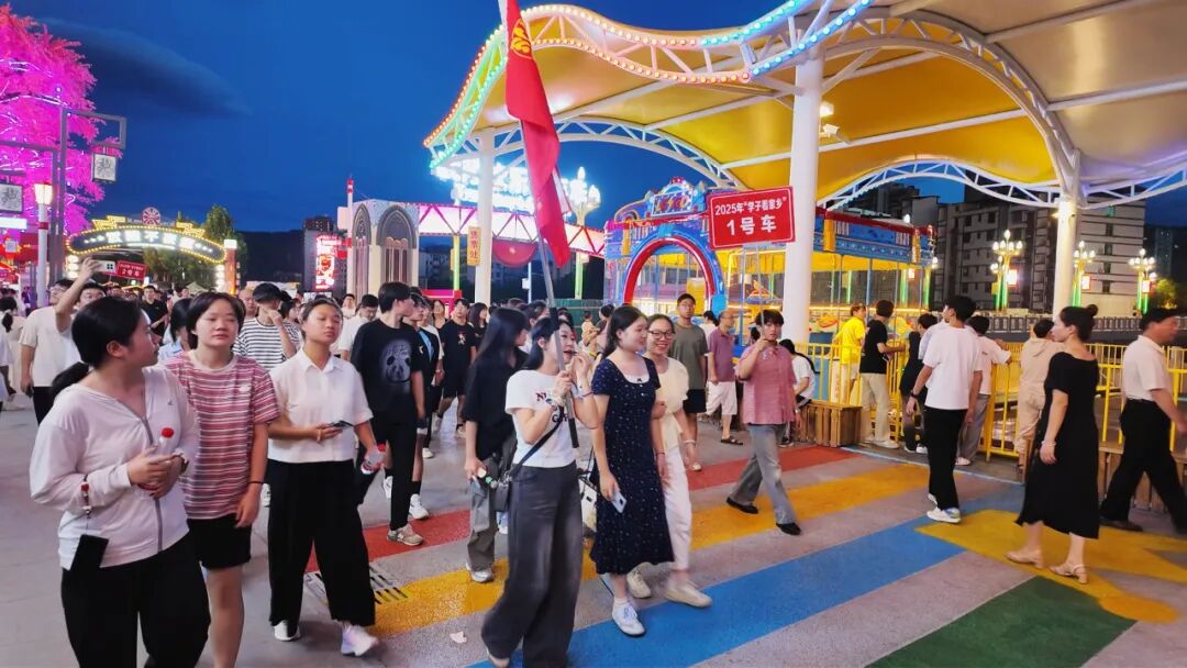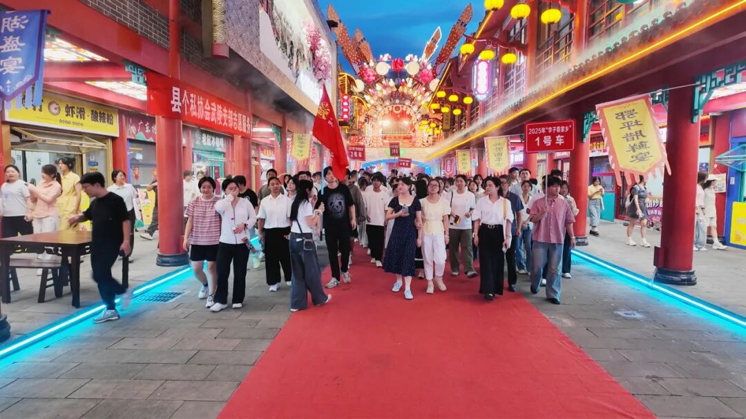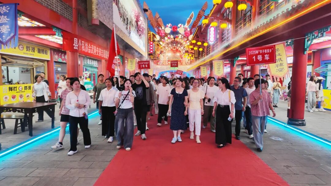 隨后,學子們來到全國首個沉浸式戲曲主題夜游街區——武陵不夜城。華燈初上,人流如織,集特色美食、夜游體驗、休閑娛樂、非遺展示于一體的街區,生動展現了竹溪深挖地方文化資源、大力發展夜間經濟和文旅康養產業的豐碩成果。學子們穿梭在古色古香的街巷中,品嘗地道小吃,觀看非遺表演,真切感受家鄉夜晚的獨特魅力與蓬勃生機。