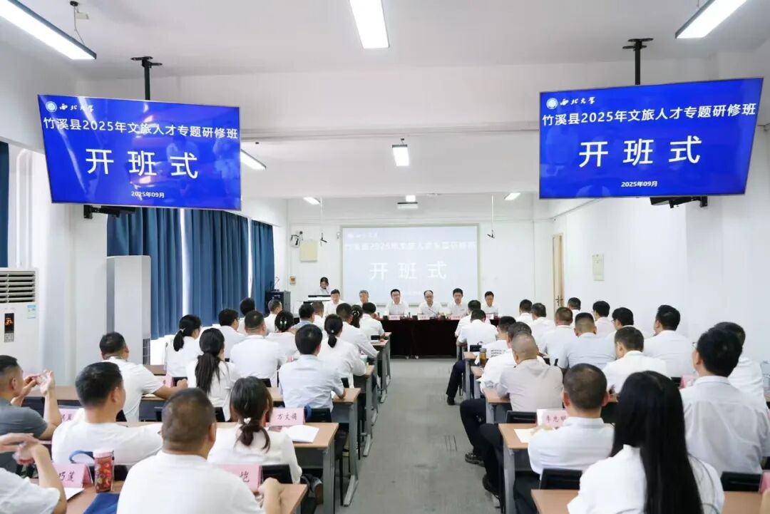 為深入貫徹落實人才強縣戰略,加快推進“旅游活縣”工程,全面增強鄉村旅游核心競爭力,竹溪以“湖北人才周”活動為契機,9月15日在西北大學舉行竹溪縣2025年文旅人才專題研修班開班暨人才工作站揭牌儀式。竹溪縣委副書記劉冬勤,縣委常委、副縣長李海濤,西北大學繼續教育學院黨支部書記葉培哲,西北大學繼續教育學院副院長萬世超出席儀式,縣委組織部、縣文旅局相關負責人及全體參訓學員參加活動。