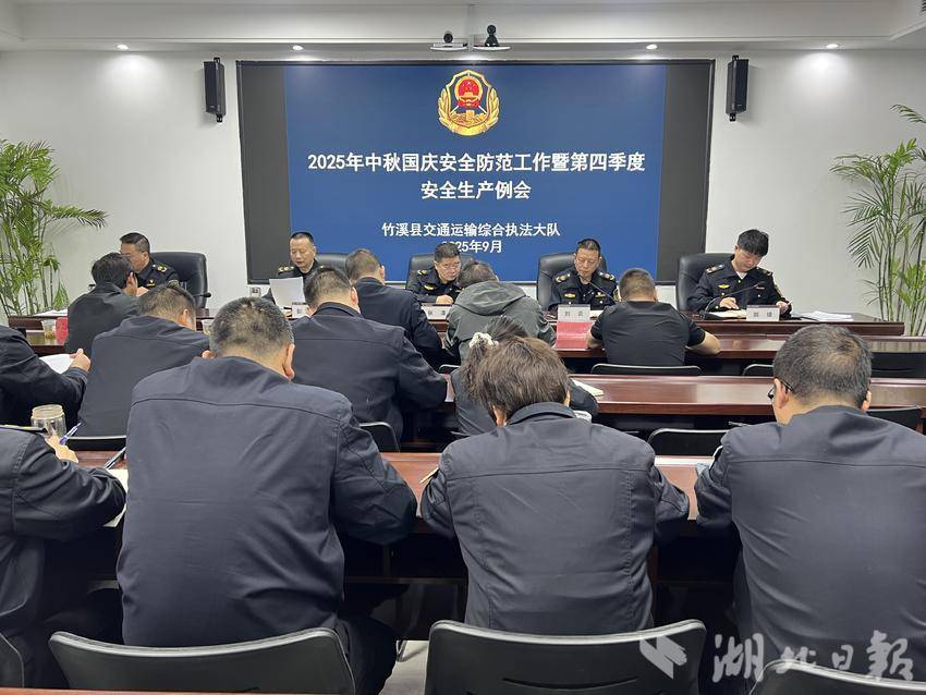 加強組織領導,提前謀劃部署。為確?!半p節”期間交通運輸秩序穩定,大隊召開了2025年中秋國慶安全防范工作暨第四季度安全生產例會,對節前的執法工作進行全面部署,明確工作重點和責任分工,制定詳細的執法檢查計劃,合理安排執法力量,確保各項工作有序開展。
