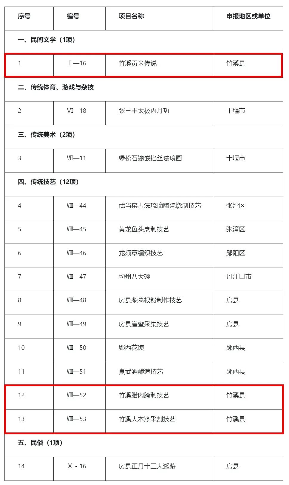 十堰市第九批市級非物質文化遺產代表性項目名錄推薦項目名單