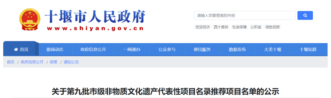 9月6日,十堰市文化和旅游局發布關于第九批市級非物質文化遺產代表性項目名錄推薦項目名單的公示,竹溪3個項目擬入選。