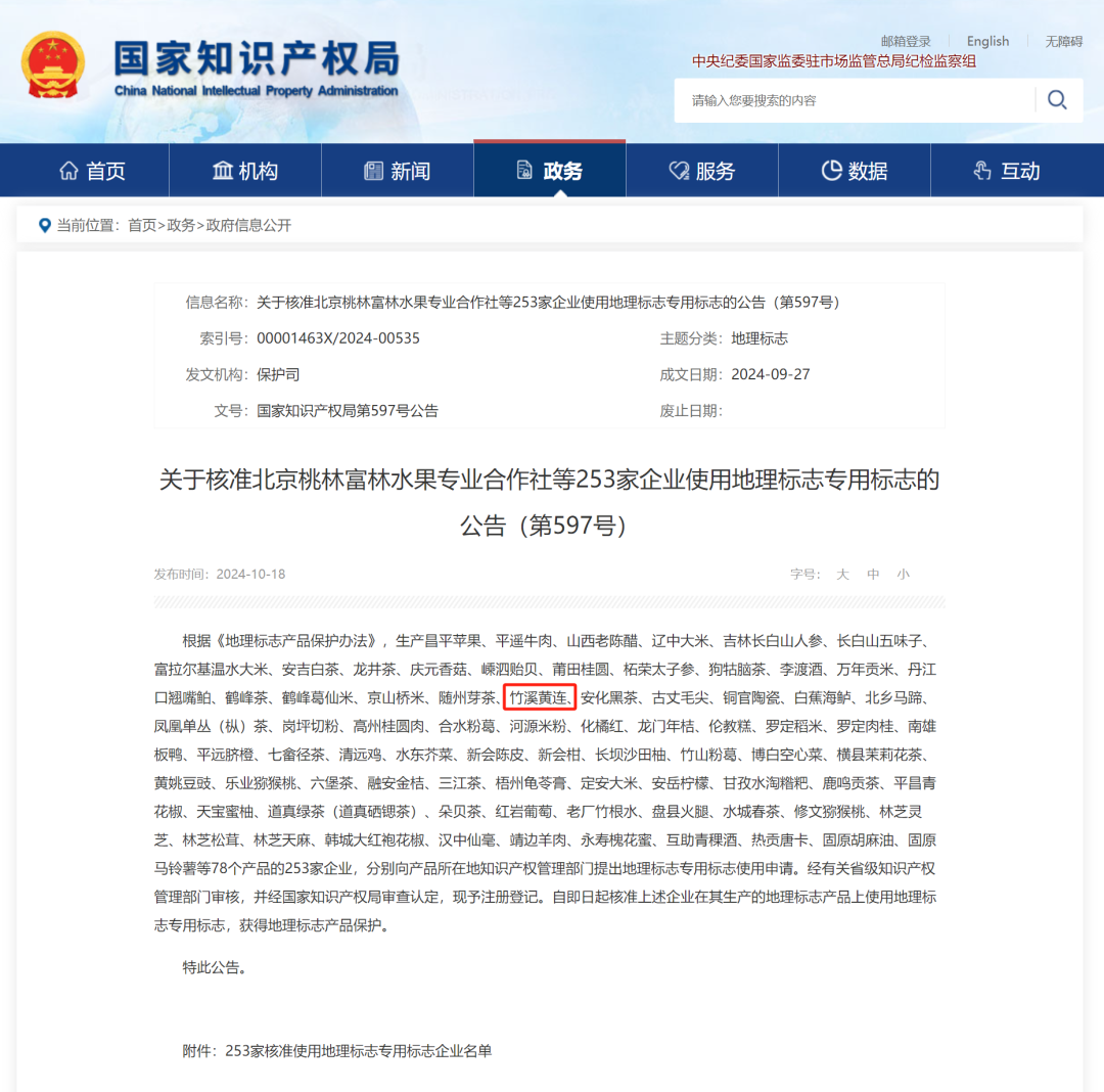 近日,國家知識產權局發布《關于核準北京桃林富林水果專業合作社等253家企業使用地理標志專用標志的公告》(第579號)。其中,十堰云浩藥業有限公司被核準使用“竹溪黃連”地理標志專用標志。