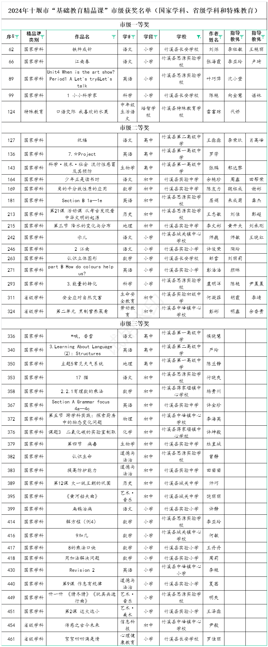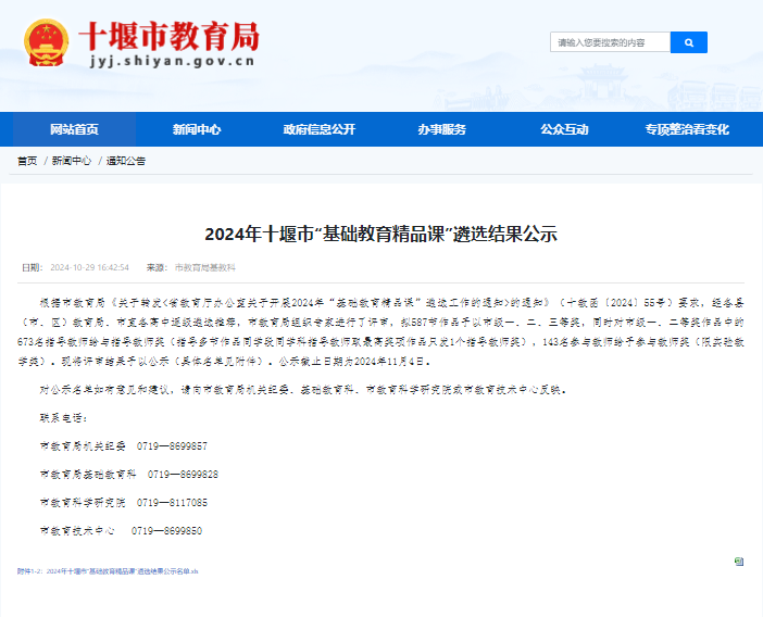 十堰市教育局發(fā)布2024年十堰市“基礎教育精品課”遴選結果公示