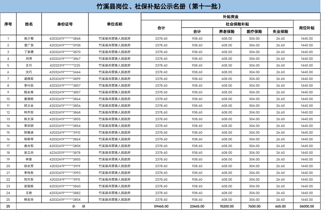 近日,竹溪縣公共就業和人才服務局在竹溪政府網發布竹溪縣崗位、社保補貼公示名冊(第十一批)。擬撥付就業補助資金59465元,這家單位的25人申請享受就業補助政策。