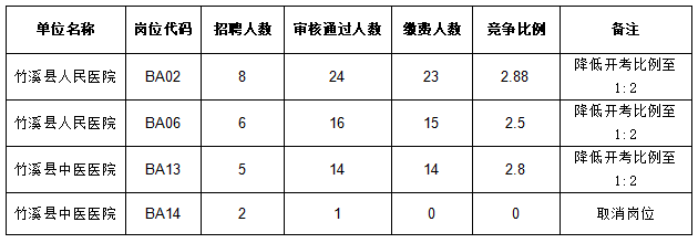 2024年竹溪縣事業單位公開招聘工作人員報名工作已結束,根據《2024年竹溪縣事業單位公開招聘工作人員公告》有關要求,現將崗位縮減(取消)計劃,降低開考比例情況公告如下: