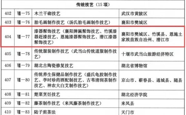 近日,省人民政府發布關于公布第七批省級非物質文化遺產代表性項目名錄的通知。竹溪漆器趕漆技藝、綠茶制作技藝兩個項目名列其中。