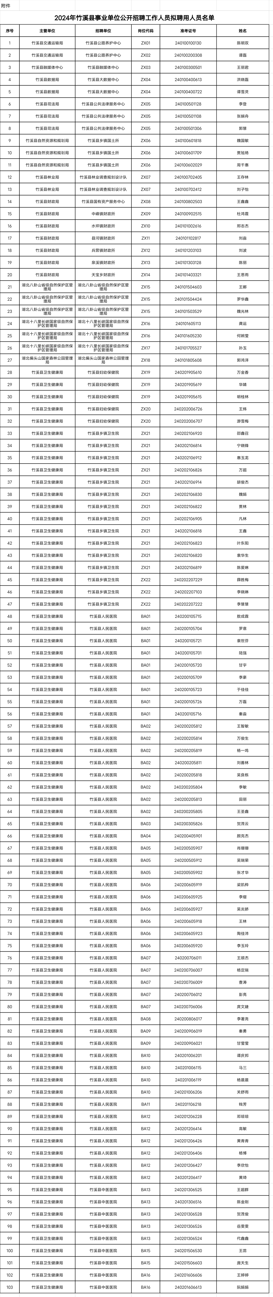 附件:2024年竹溪縣事業(yè)單位公開(kāi)招聘工作人員擬聘用人員名單