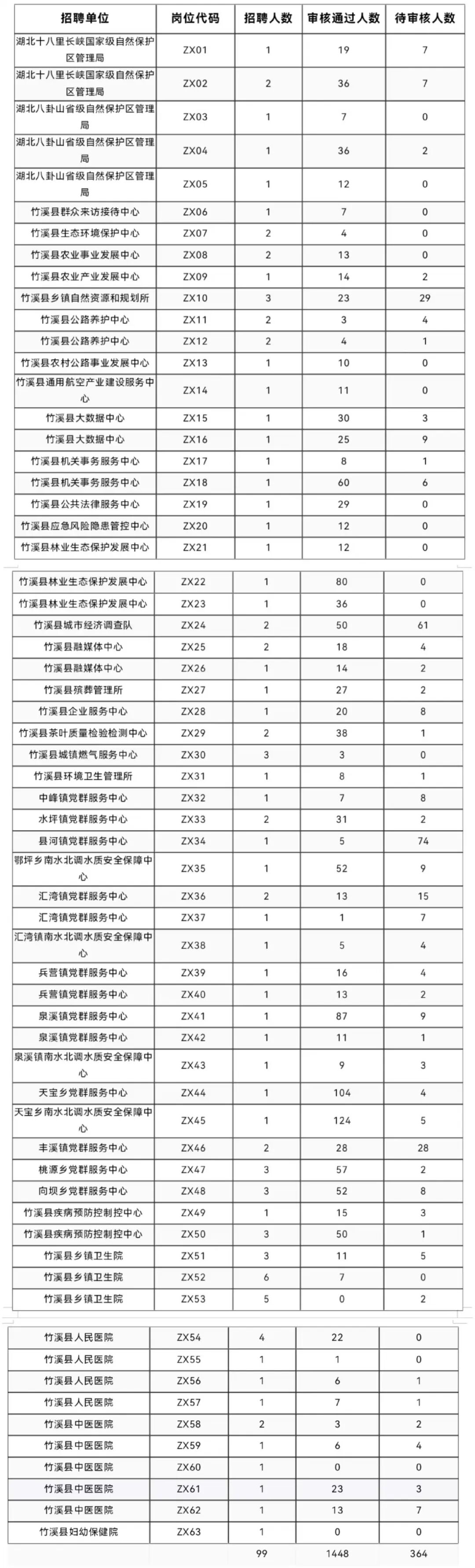 2025年竹溪縣事業單位公開招聘工作人員報名工作已于4月21日上午八點半正式開啟為方便考生報名選崗今日縣人社局公布報名情況(截止4月24日11時)↓↓↓