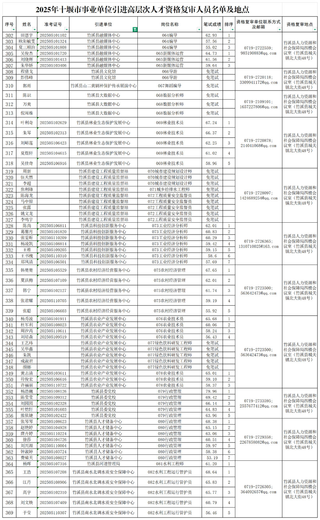 1.2025年十堰市事業單位引進高層次人才資格復審人員名單及地點