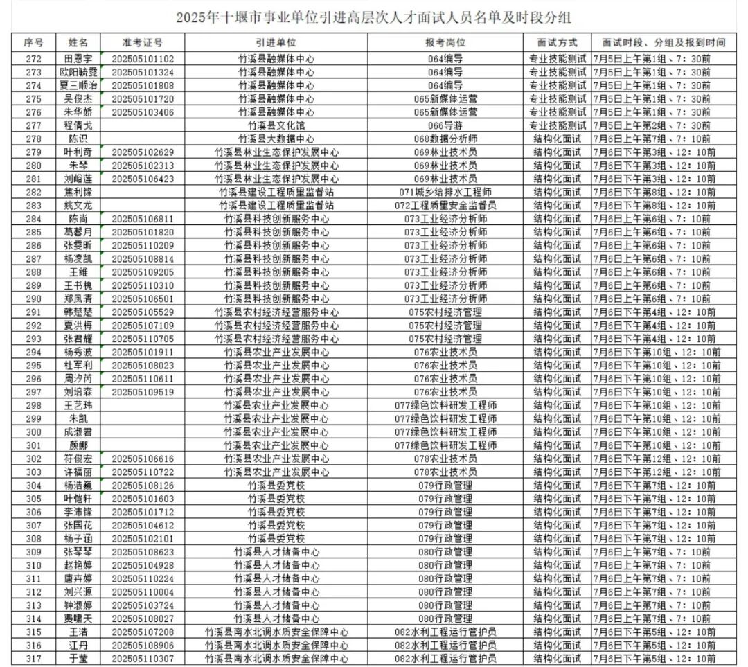 附件:2025年十堰市事業單位公開招聘面試人員名單及時段分組
