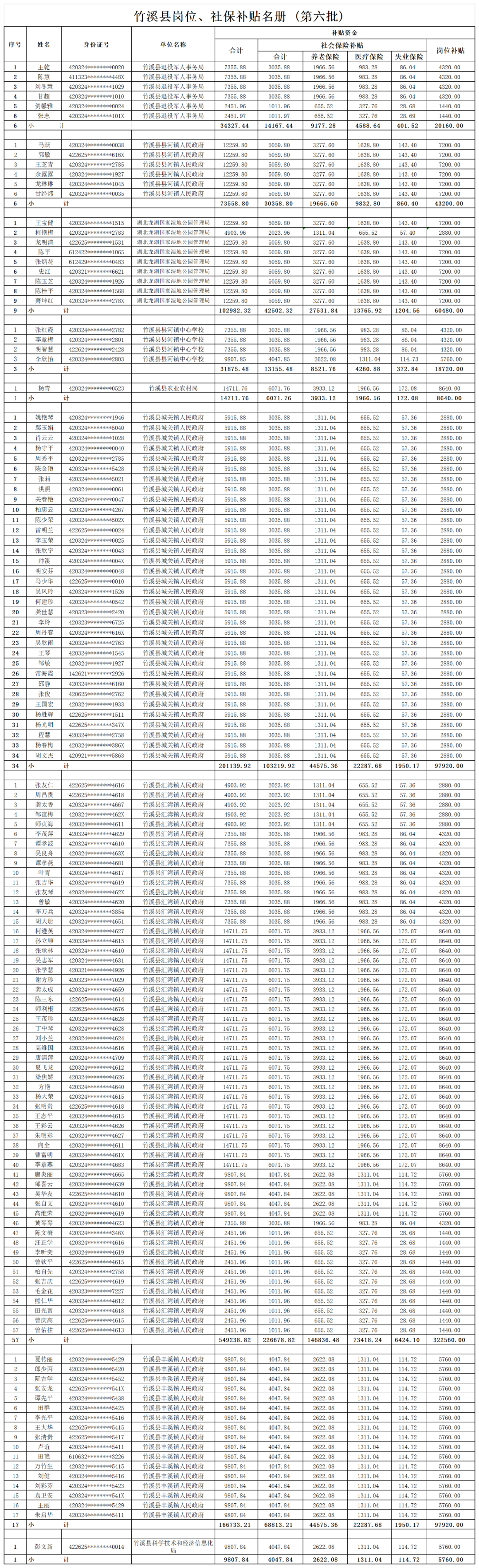8月14日,竹溪縣公共就業和人才服務局在竹溪政府網發布竹溪縣崗位、社保補貼公示名冊(第六批)。擬撥付就業補助資金1184375.58元,涉及竹溪9家單位135人。