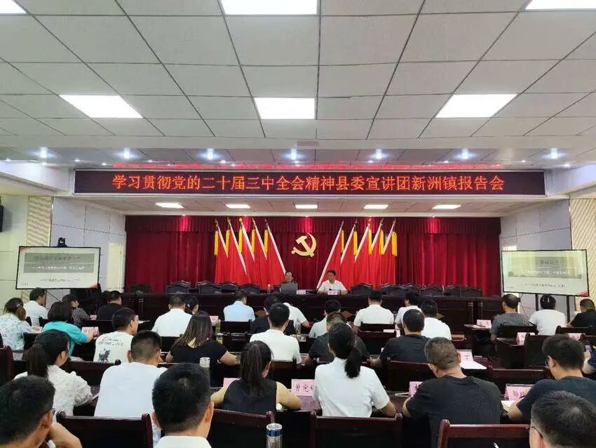 8月30日,新洲鎮舉行學習貫徹黨的二十屆三中全會精神宣講報告會,邀請縣委宣講團成員李才江作宣講報告。鎮領導班子成員、鎮直單位負責人、鎮村干部、駐村工作隊共計60余人參加學習。