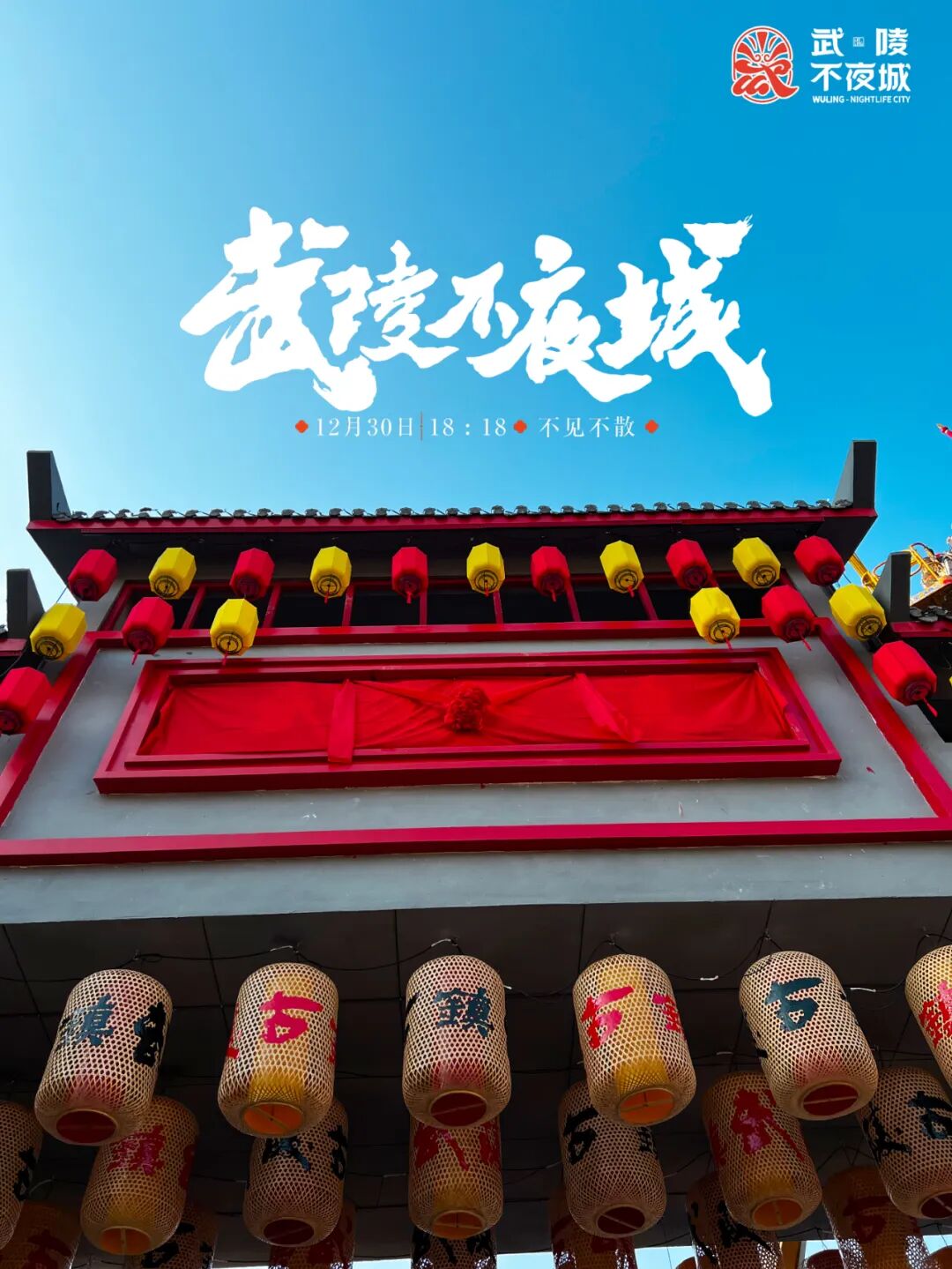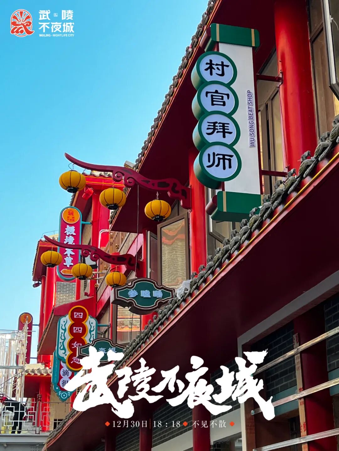 飛檐凌空,斗拱交錯,殿頂琉璃,紅墻黛瓦,這里不是“詩和遠方”,這是即將揭開面紗的——武陵不夜城。12月30日,我縣打造的中國首個沉浸式戲曲文旅街區武陵不夜城,將正式開街!