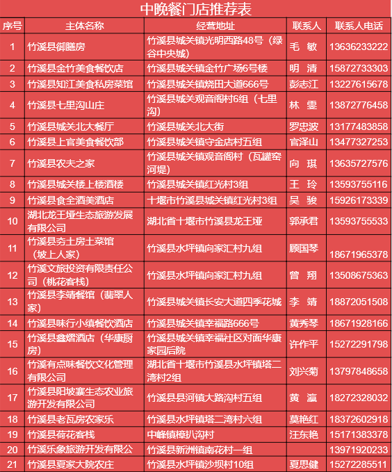 為方便大家出游、住宿、就餐,小編特地為大家搜集整理了我縣部分餐飲門店、酒店民宿的地址和聯(lián)系方式附大家可以收藏起來,以備不時(shí)之需