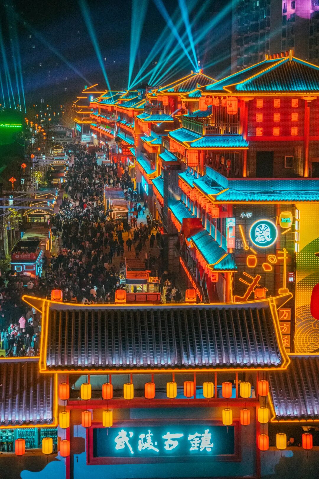 文旅街區燈光璀璨,各類節目精彩紛呈,特色美食琳瑯滿目,市民游客絡繹不絕……
