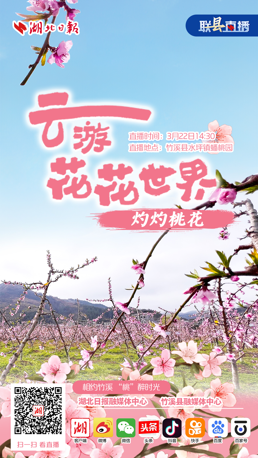 今天(3月22日)下午2點,湖北日報聯(lián)合竹溪縣融媒體中心帶你云覽美景,共赴一場春日“花”事,我們不見不散!