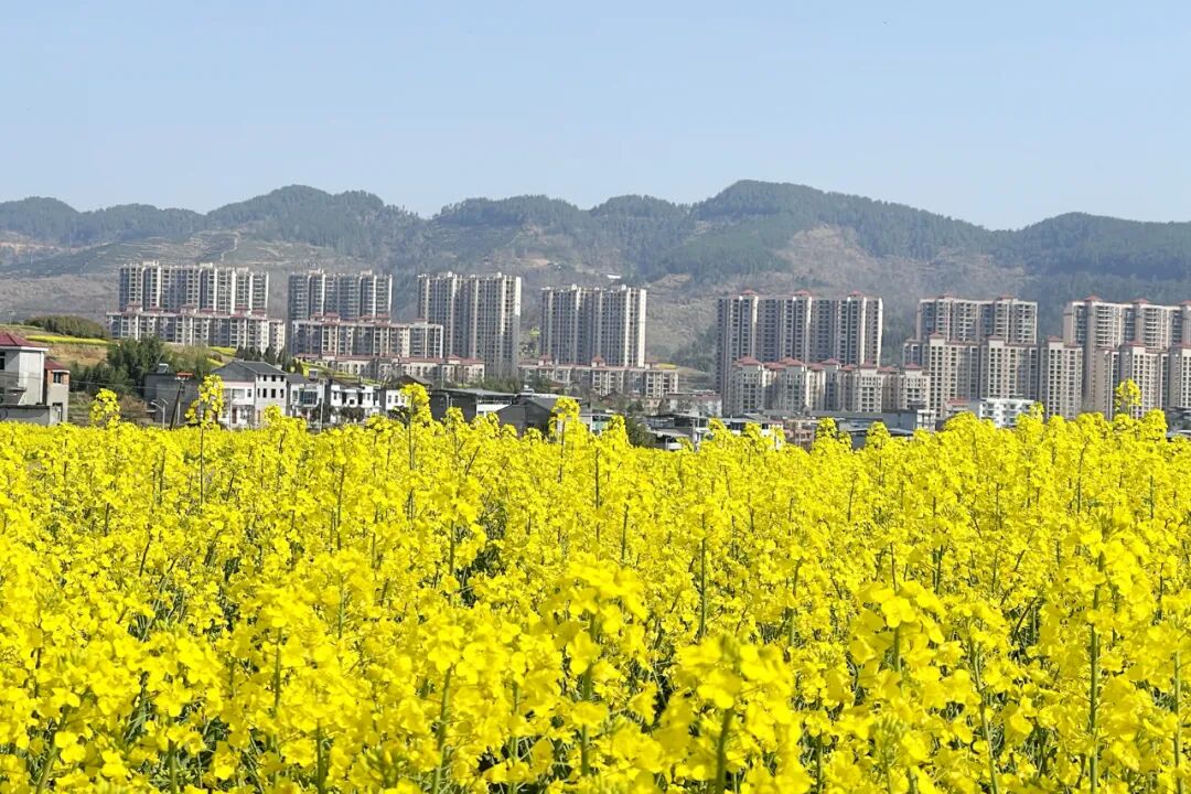 滿目金黃香百里,一方春色醉千山,在城關(guān)鎮(zhèn)郭家梁子村、中峰鎮(zhèn)湯家壩村……金燦燦、黃澄澄的油菜花競(jìng)相綻放,微風(fēng)輕拂,花香撲鼻,沁人心脾,濃郁的春日氣息撲面而來(lái),恍惚間以為自己在畫(huà)中穿梭,連步伐都會(huì)變得溫柔起來(lái)。