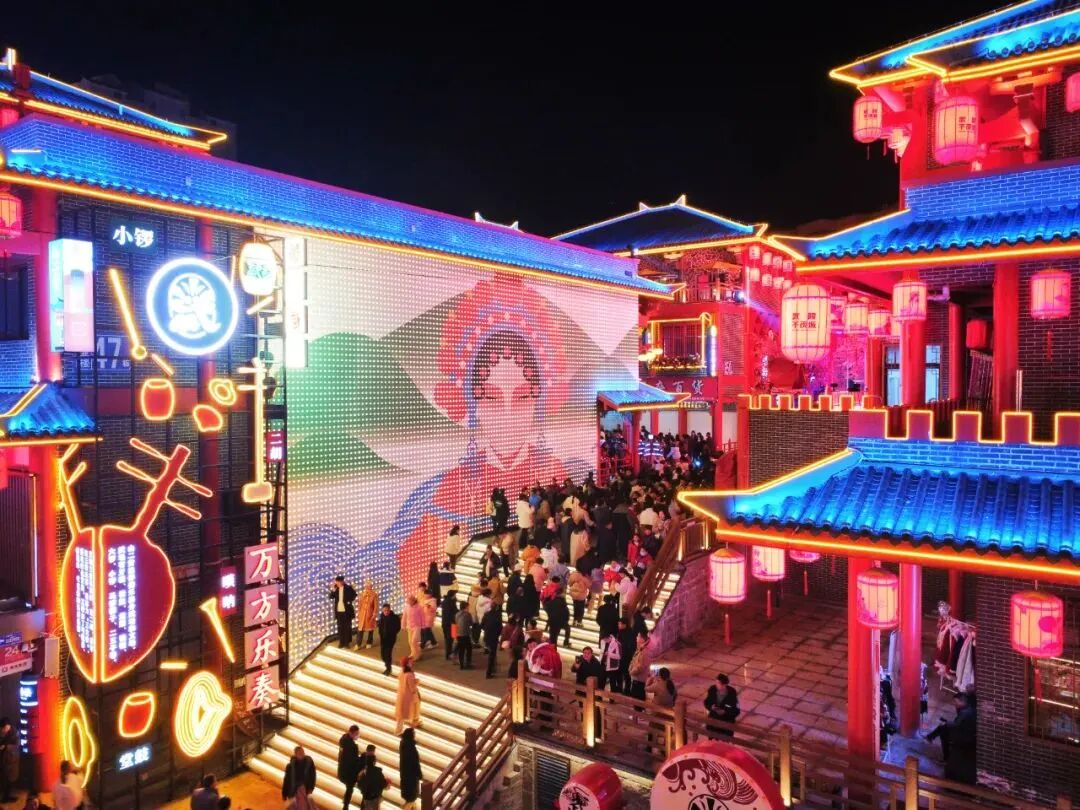 位于湖北省竹溪縣西關(guān)街的沉浸式戲曲主題夜游街區(qū)“武陵不夜城”,自推出以來熱鬧非凡:2023年12月30日開街以來,首日吸引游客10萬人次,14天游客量突破100萬人次。