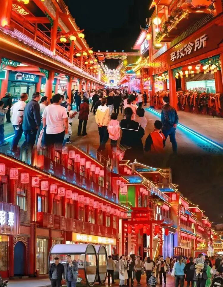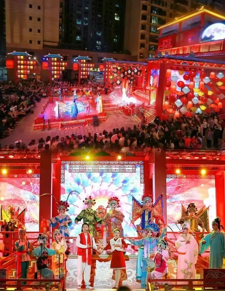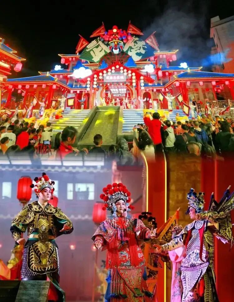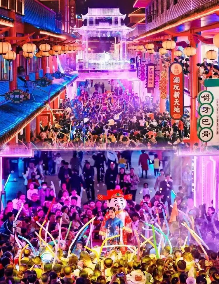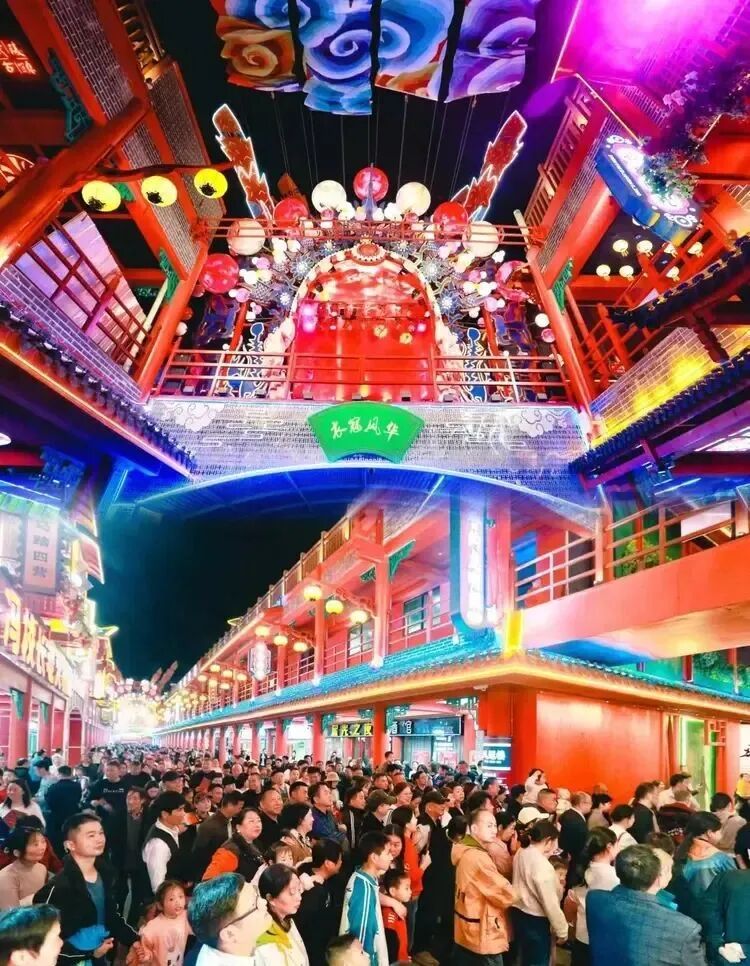 入夜,踏入竹溪武陵不夜城,大家便被景區門口人潮如織的場面所震撼。隨著戲曲曲牌響起,武陵不夜城瞬間流光溢彩、美輪美奐,山二黃等戲曲國粹展演瞬間將大家帶入了戲曲的王國。沉浸式游園,武術、雜技、川劇變臉、萬人蹦迪等表演和互動項目讓整條古街一線串珠,各個演繹節點劇情環環相扣,精彩不斷。