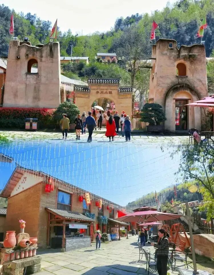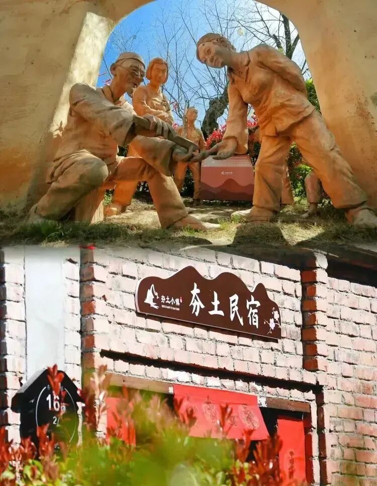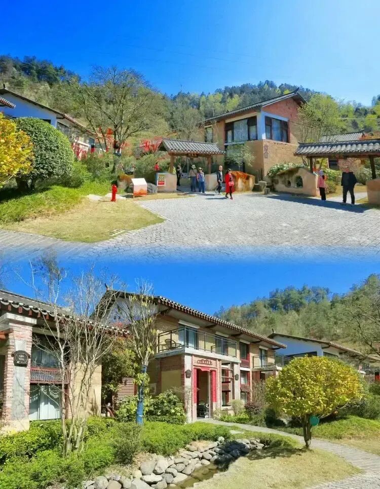 竹溪縣古稱武陵,據考證,晉代陶淵明筆下《桃花源記》所描述的正是竹溪鄉村風貌。作為此行的首站,西安旅行社同仁一走進桃花島夯土小鎮,便被這里“歸田園居”般的古樸生動所吸引,一處處山野小院,沿用夯土墻外觀和老式徽派建筑風格的民宿,傳達著康養與田園的另一種魅力,是現代版“桃花源居”的真實寫照。