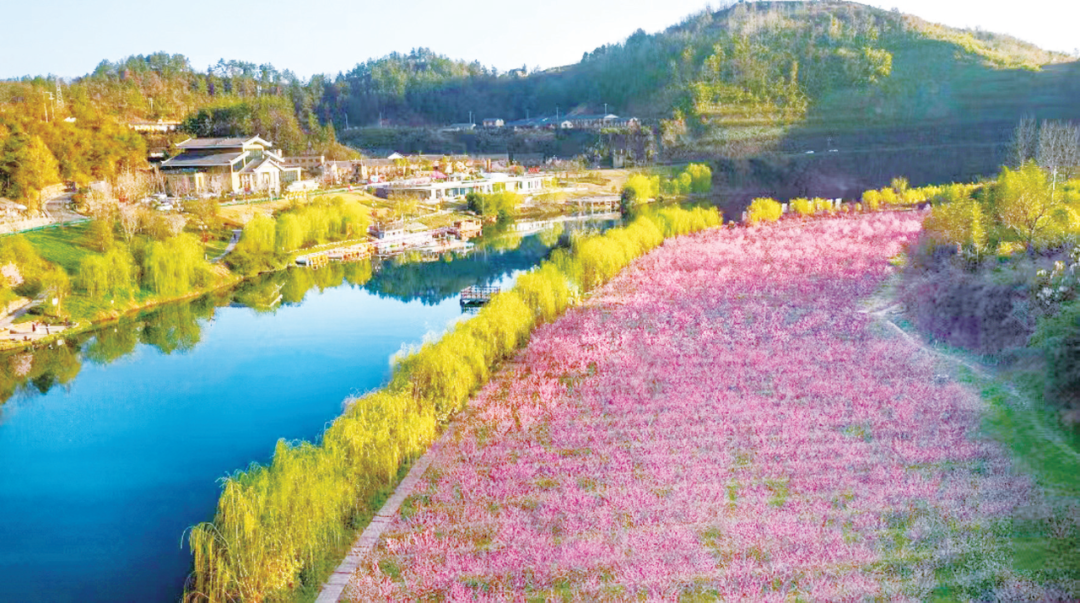 春光和煦,繁花似錦。日前,記者走進“省級文明村”水坪鎮(zhèn)向家匯村。這里群山環(huán)抱,植被茂密。竹溪河九曲十八彎,蜿蜒至村中,河水擁著一方半島,因種滿桃樹,被稱作桃花島。島上鳥兒翻飛,水中魚翔淺底,岸邊游人如織,綠樹紅花與夯土民宿交相輝映。