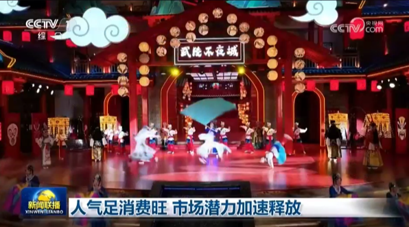 5月5日,中央廣播電視總臺《新聞聯(lián)播》欄目播出【人氣足消費旺 市場潛力加速釋放】,聚焦我縣武陵不夜城戲曲文化街區(qū)農(nóng)家樂、民宿及文旅消費。