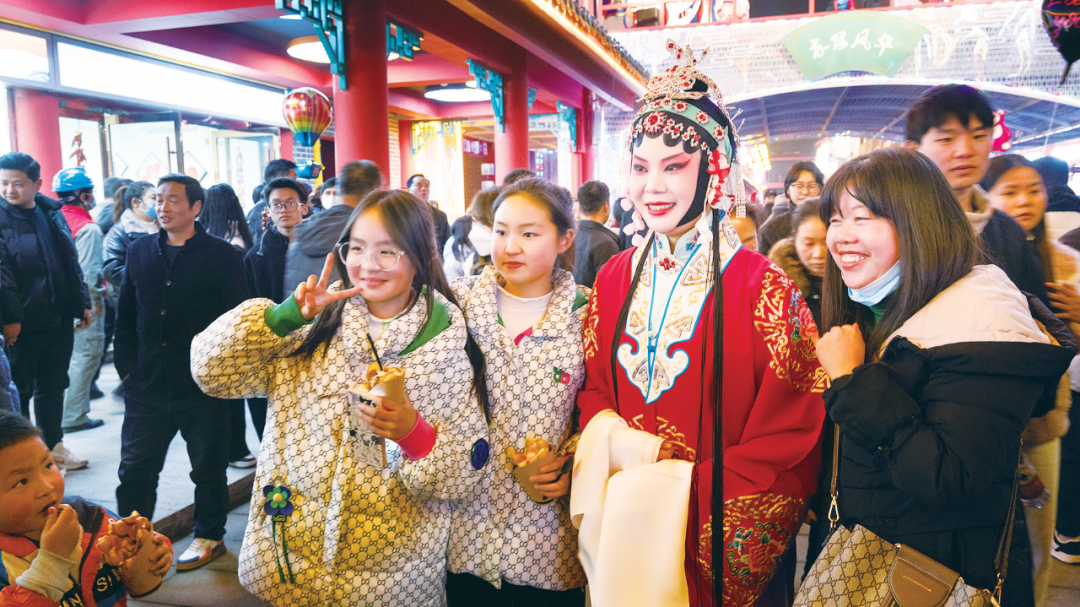 游客在武陵不夜城與山二黃演員合影。通訊員 周明鑫 攝