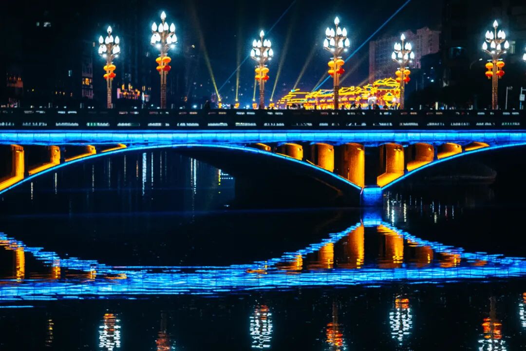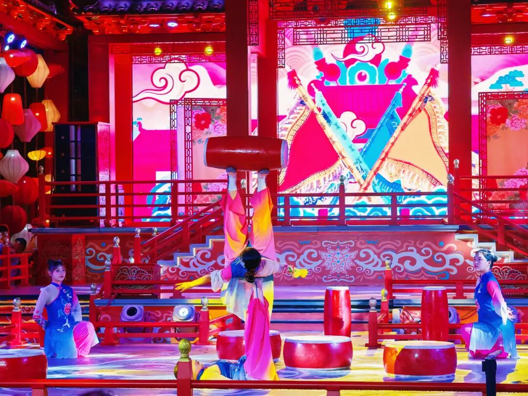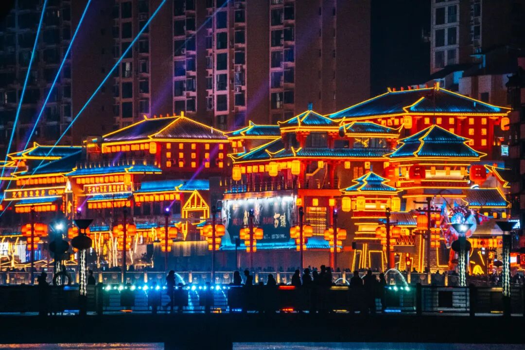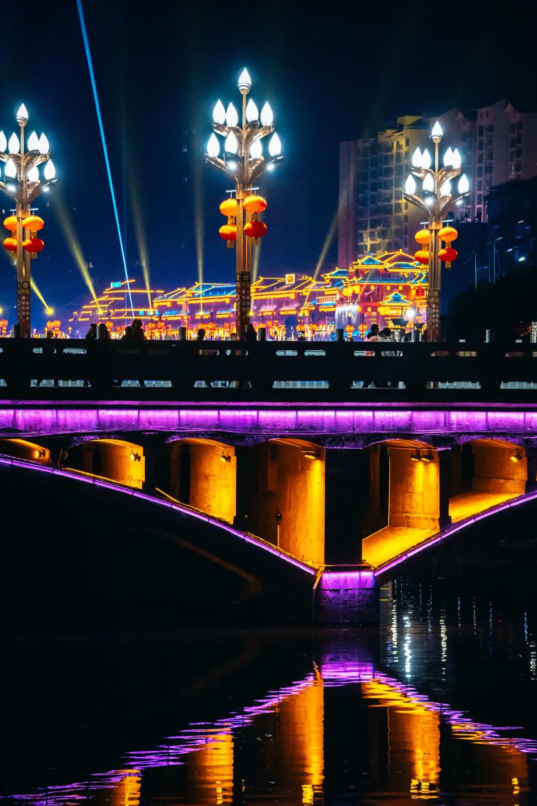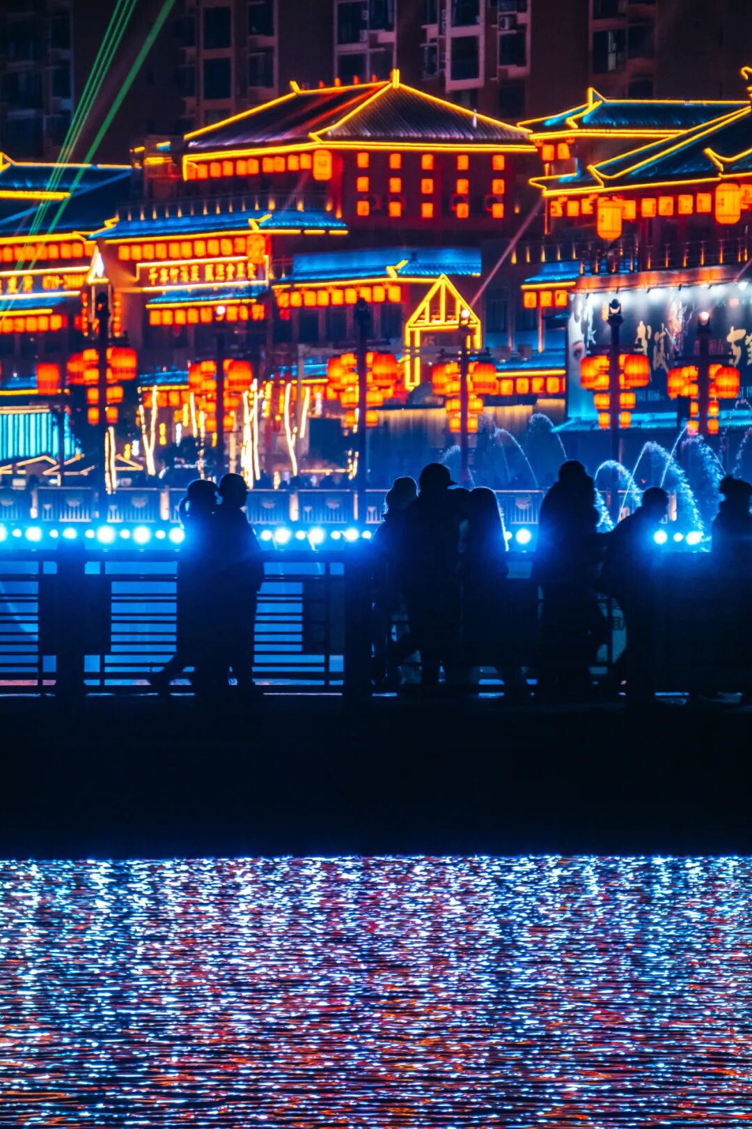 在這里,你可以跟著人群在熱鬧的街區中穿梭,也可以吹著河風,約三五好友共賞燈光水秀,或是沉浸式觀看一場演出,體驗戲曲國潮藝術,一天學習、工作的辛勞在此刻都能暫時忘記,這就是武陵不夜城的魅力。