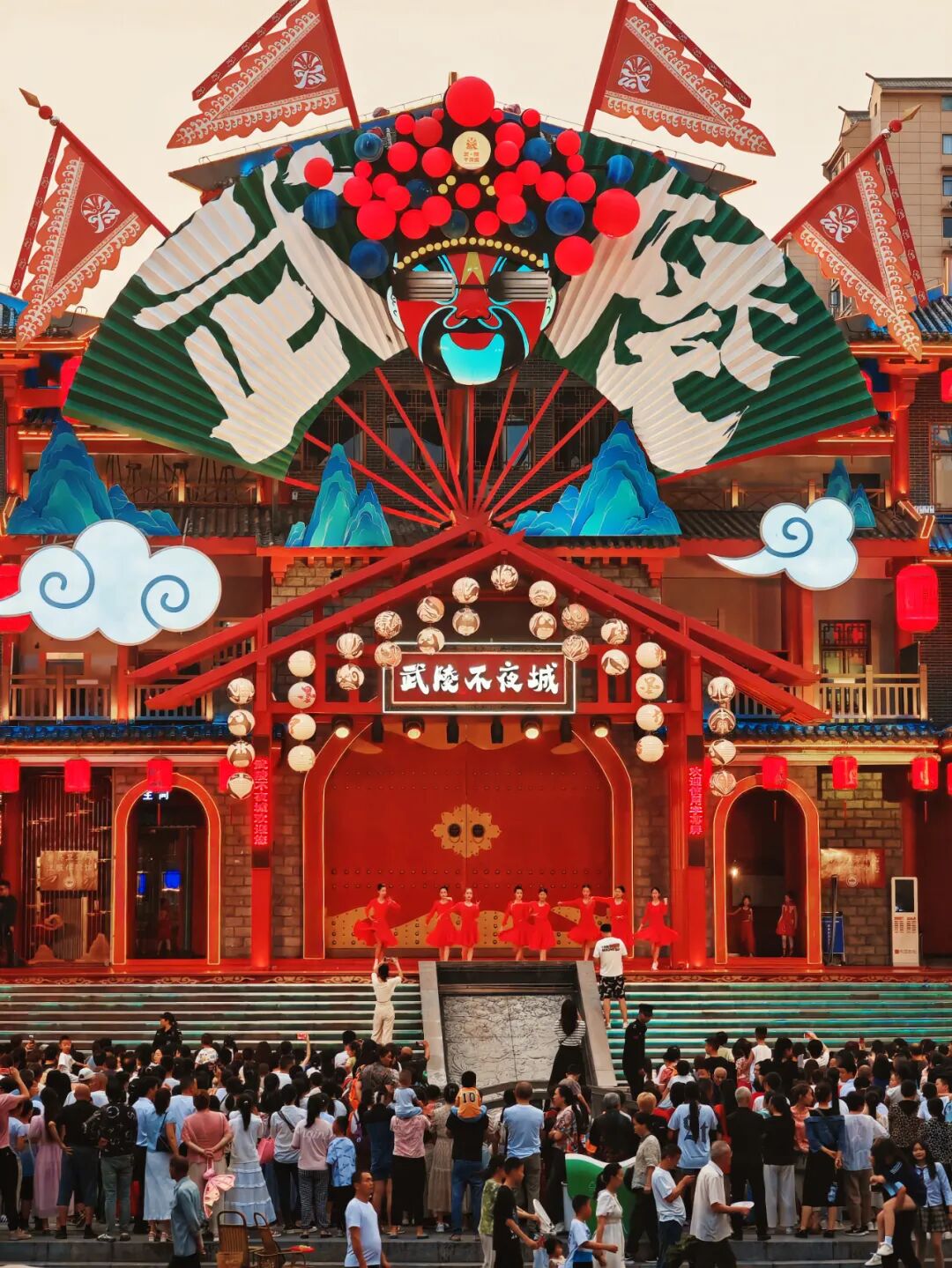 武陵不夜城的夜晚成為夏日休閑放松的好地方,隨著夜間消費場景日趨豐富,不僅為游客帶來了新體驗,激發出了城市消費新活力,戲曲聲、燈影、人潮、古韻……更匯成了一幅流光溢彩的畫卷。