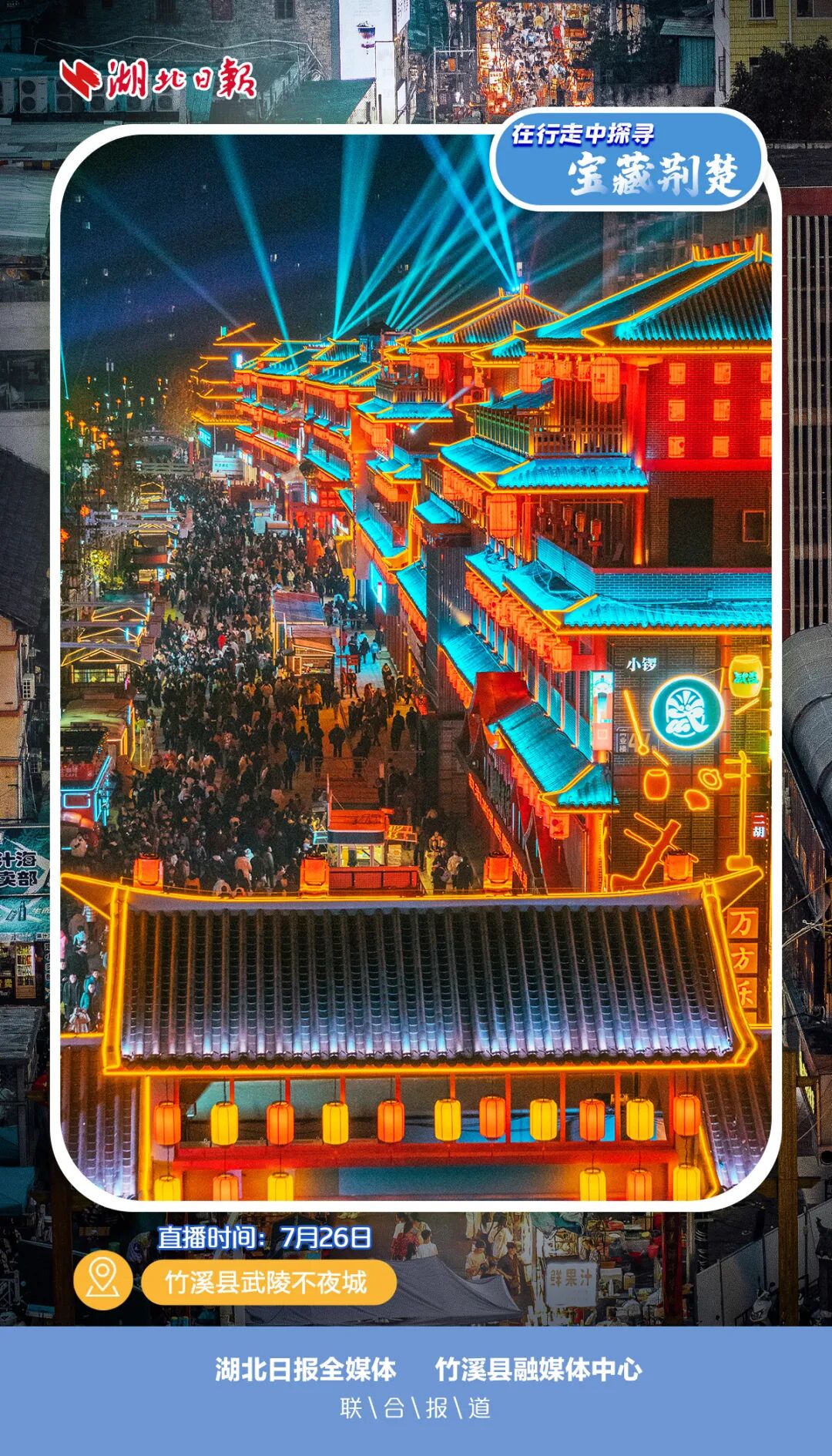 今晚,7月26日8:20-9:10,湖北日報將聯(lián)動竹溪縣融媒體中心開展“夜經(jīng)濟(jì)”系列直播第四期《夜游?逛逛逛 在行走中探尋寶藏荊楚》,直播預(yù)告片先睹為快。