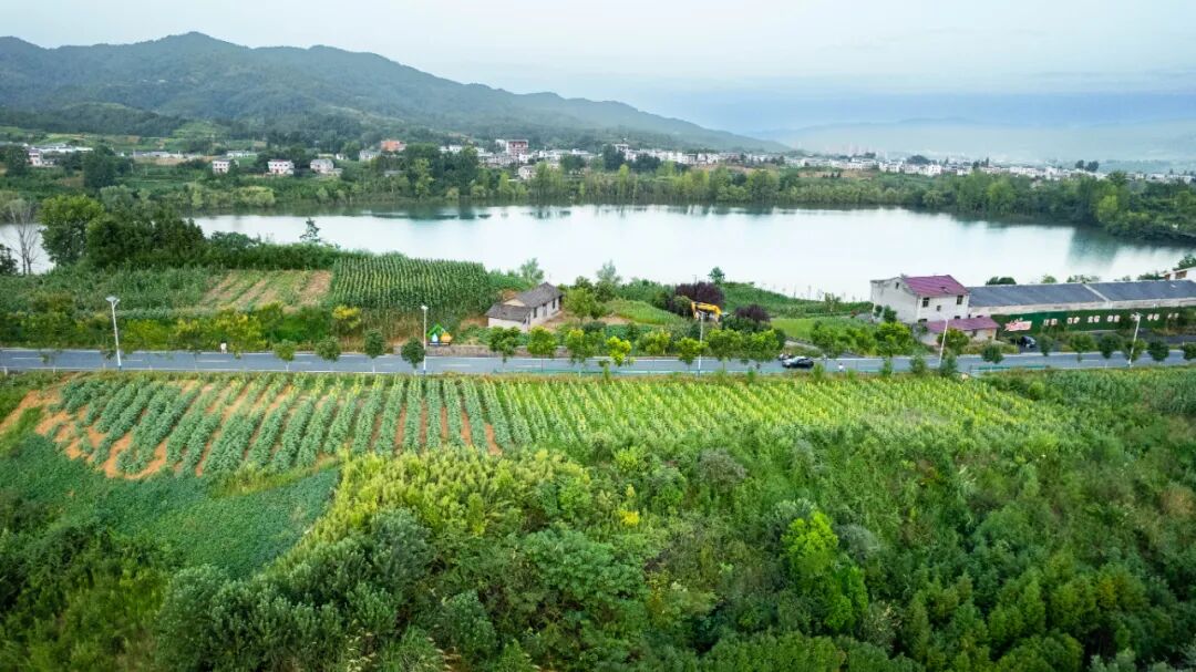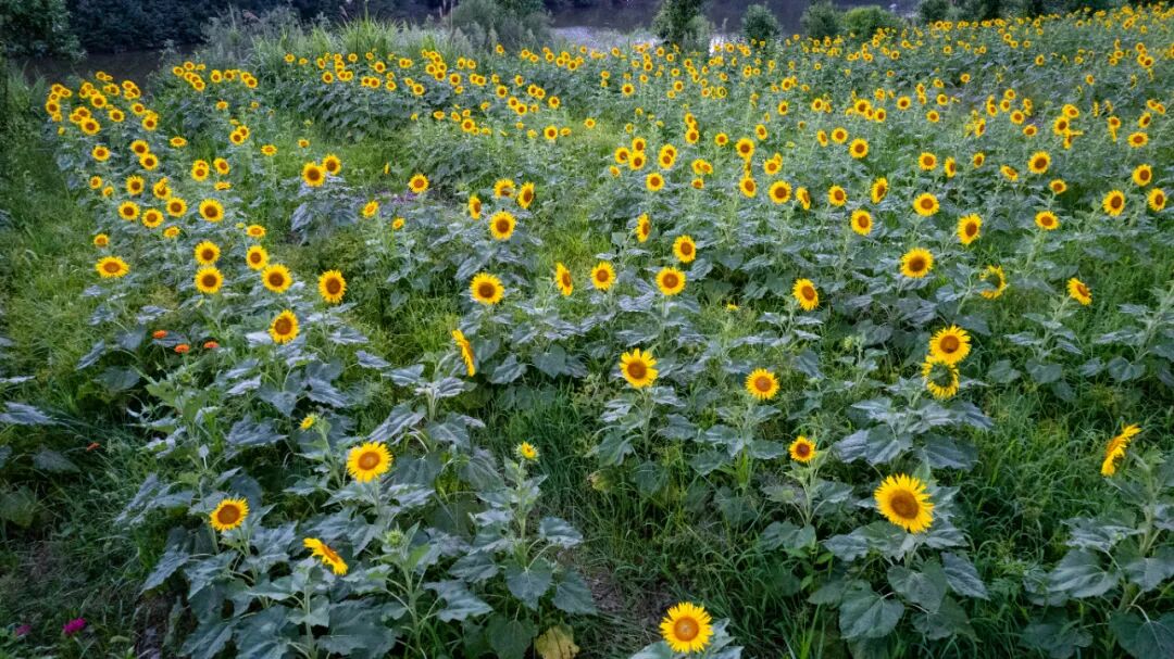 龍湖濕地沿線,一望無際的葵花海在青山綠水的環繞下,充滿了詩情畫意。